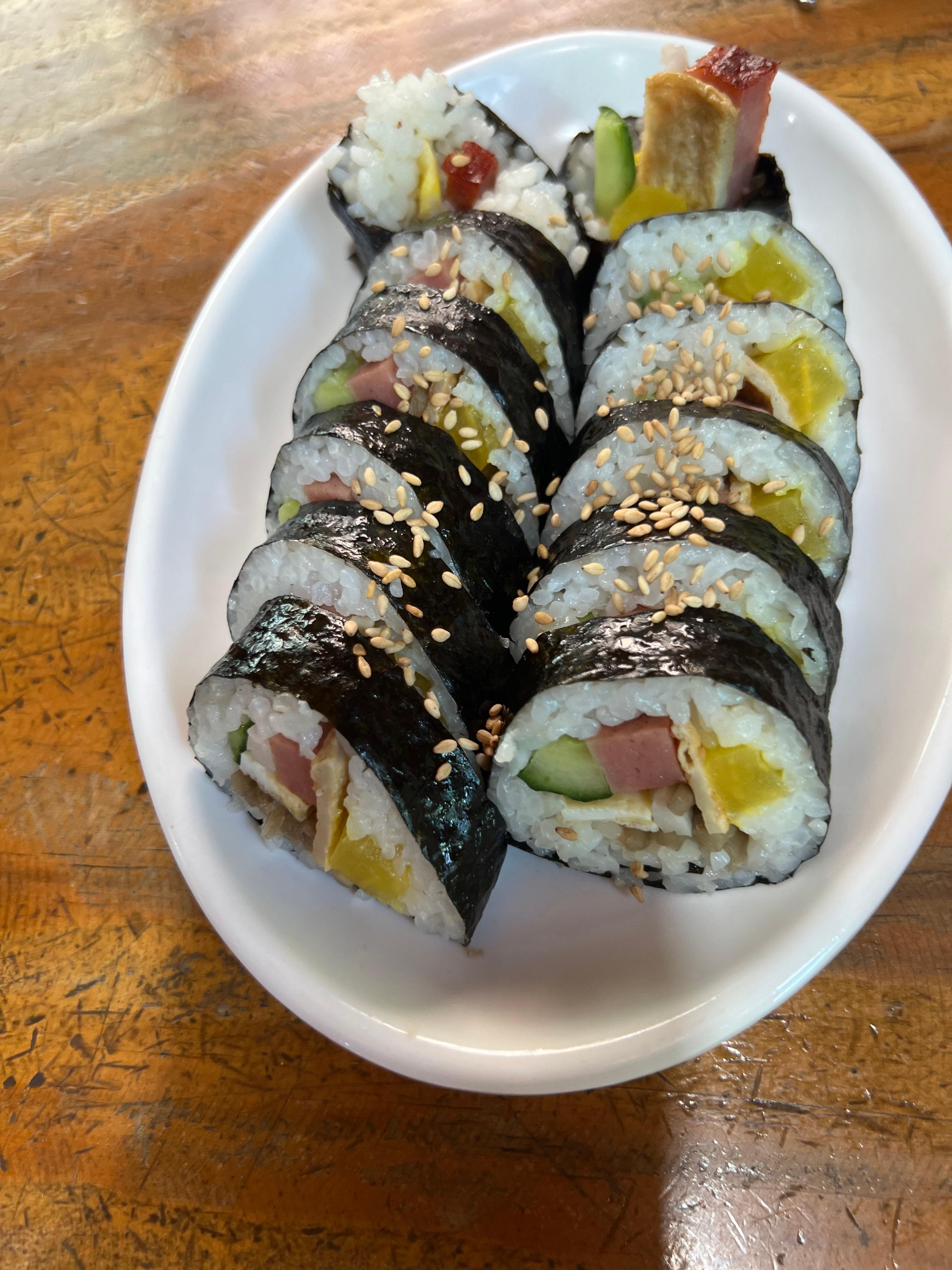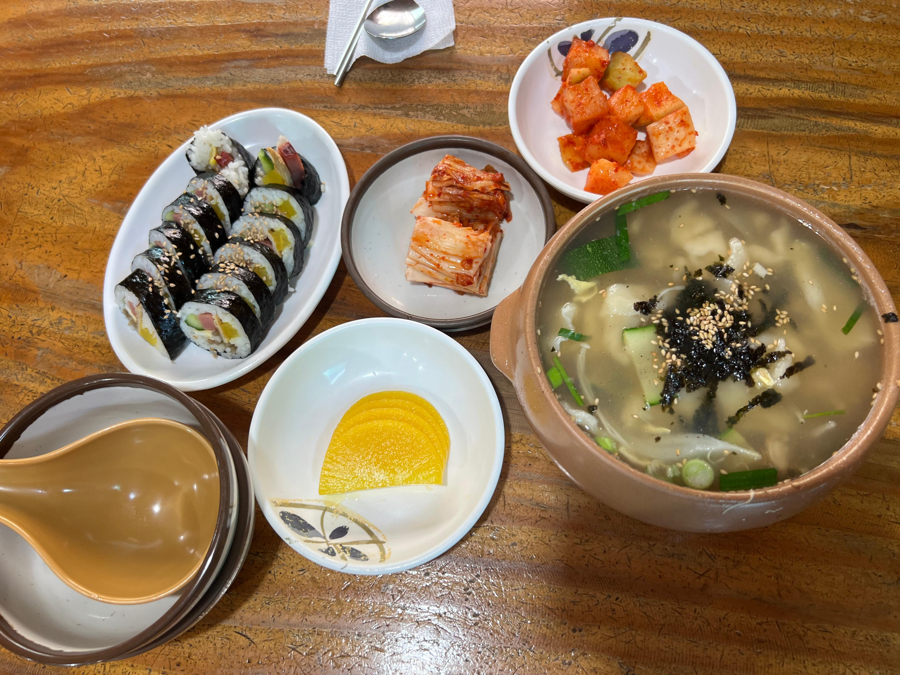 간단하지만 깊은 맛을 자랑하는 김밥은, 수제비나 칼국수와 함께 곁들이기에 안성맞춤입니다. 참기름의 고소함과 신선한 재료들이 어우러져 별미로 손꼽힙니다.