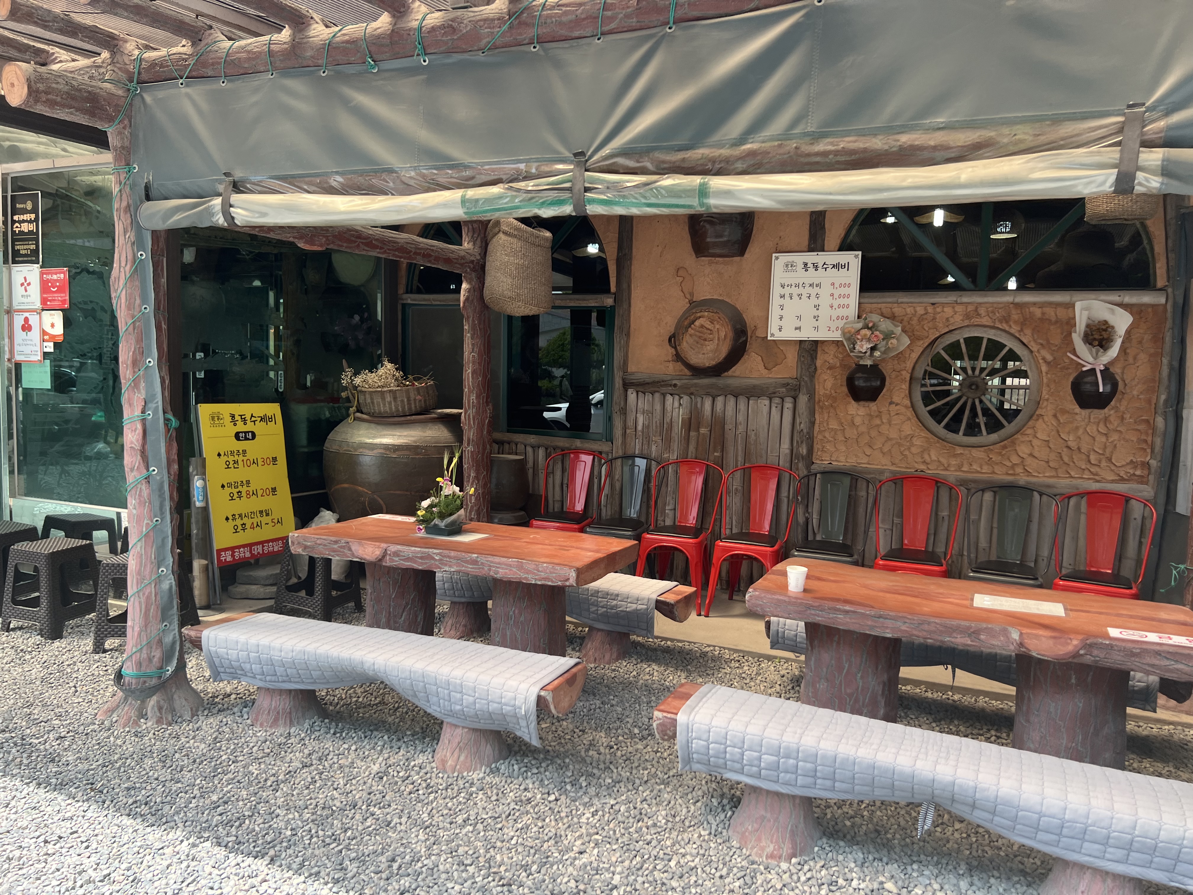 배가네 흥동 수제비 본점은 전통적인 한옥 스타일의 인테리어로, 따뜻하고 아늑한 분위기를 자아냅니다. 내부는 좌식과 입식 테이블로 구성되어 있어 다양한 연령층이 편안하게 식사할 수 있습니다. 특히 점심시간에는 많은 손님들로 붐비니, 여유로운 식사를 원하신다면 이른 시간대나 브레이크 타임 이후 방문을 추천드립니다.