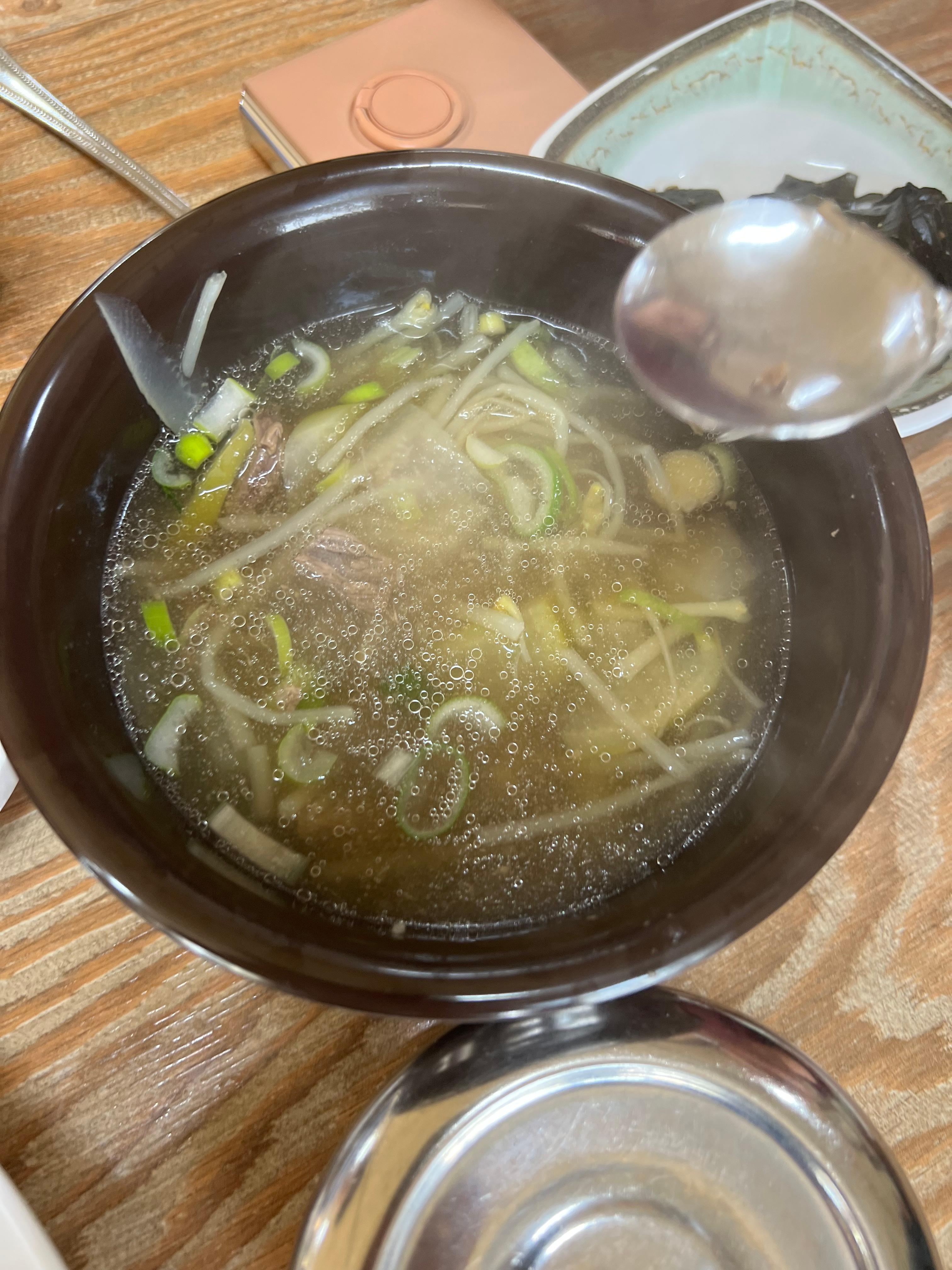 부드러운 한우와 뽀얀 국물이 조화를 이루는 소고기국밥은 아이들과 함께 먹기에도 좋습니다. 콩나물이 들어가 시원한 맛을 더해줍니다.
