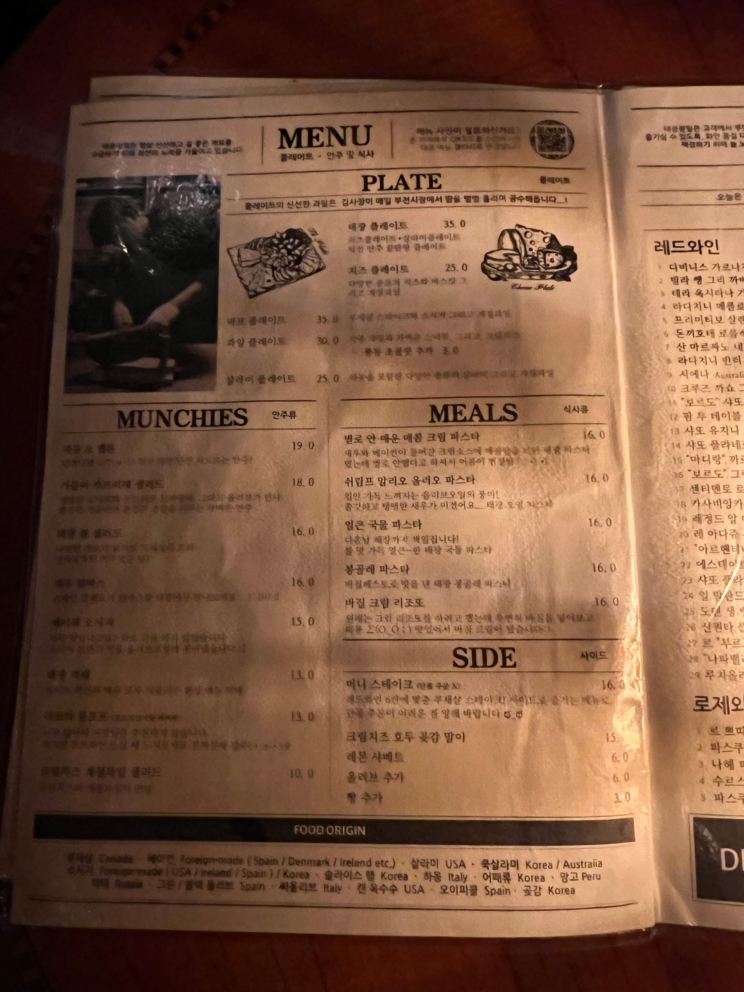 - 태광플레이트 (₩35,000): 치즈, 살라미, 과일이 한데 어우러진 푸짐한 안주로, 발사믹이 뿌려진 살라미를 크래커에 올려 먹거나, 메론과 하몽의 조합을 즐길 수 있습니다.