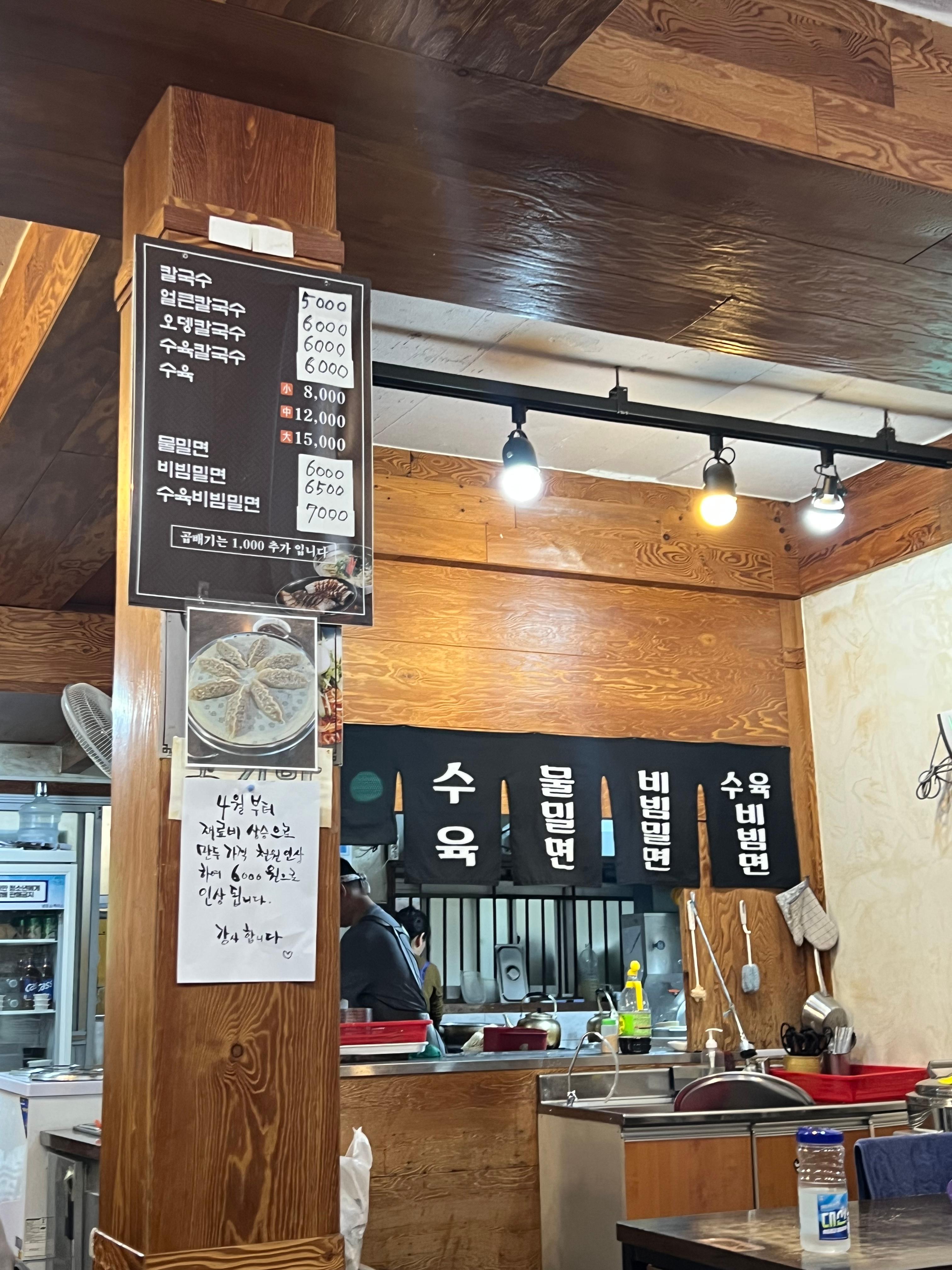 | 수육칼국수 | 수육과 칼국수면이 함께 어우러진 대표 메뉴 | 6,000원 |