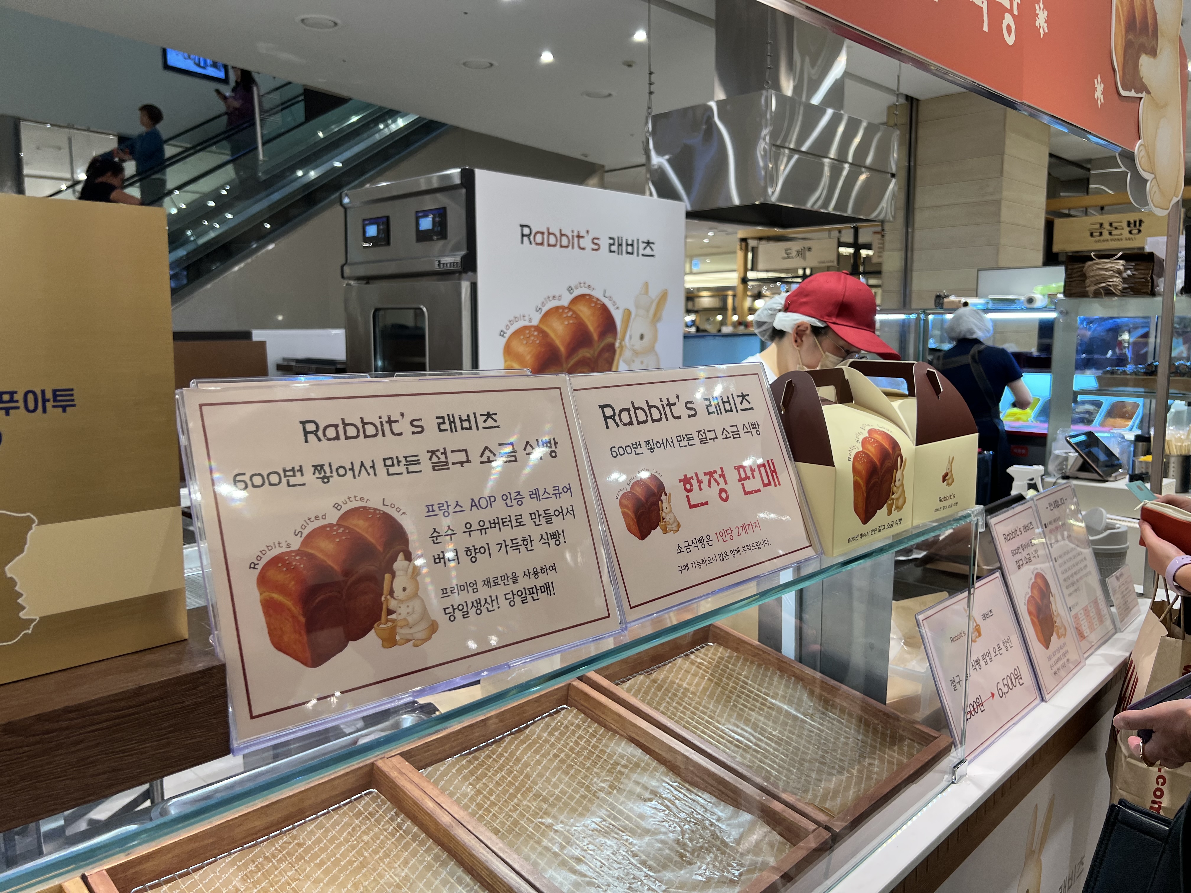 부산 해운대구 센텀시티에 위치한 신세계 백화점 지하 1층 팝업존에서 "래비츠(Rabbit’s)"의 프리미엄 식빵, '절구 소금 식빵'이 큰 인기를 끌고 있습니다. 이 식빵은 600번 절구질한 소금과 프랑스산 AOP 발효버터, 순수 우유를 사용하여 풍미를 더한 제품으로, 2025년 5월 23일부터 5월 31일까지 한정 판매 중입니다.